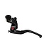 The hand activated master cylinder lever has a clever 3 way adjustable point of support. This mimics the effect of using a piston size 1 mm below and above the selected hydraulic ratio. Simply remove and reposition the lever support retaining screw for a softer or harder pressure point. All 3 positions offer 90° full radial activation.