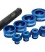 Wheel bearing remover set with internal and external adapters can be changed quickly to accommodate a wide range of bearing combinations. Read more..